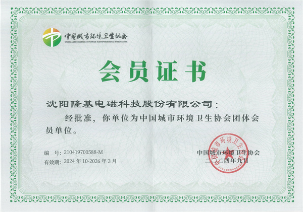 近日,沈陽隆基電磁科技股份有限公司正式成為中國城市環(huán)境衛(wèi)生協(xié)會的會員單位,沈陽隆基在環(huán)保領(lǐng)域的專業(yè)實力再獲行業(yè)認(rèn)可。